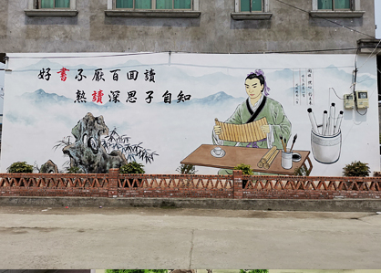 溫州市墨客墻繪藝術有限公司主要從事有個性有創意的家居裝飾墻繪、幼兒園卡通彩繪、KTV酒吧主題墻繪、3D立體墻繪、習哥彭姐文化大革命的城鄉文化宣傳墻繪等,當然還有我們獨歩武林的高墻墻繪藝術!畫高墻有時一個頭像就有兩米,不僅僅是大了型不好把握,一般習慣在陸地作戰的繪畫者往往上去后會讓你唱起一首歌:“三月里的小雨,淅瀝瀝瀝......瀝瀝……淅瀝瀝瀝下個不?!本褪谴魃夏虿粷瘢麄円矔谏厦嫜菔九两鹕N覀兪┕r下面觀看的人如少女初戀般心跳,欣賞的人似紂王品酒觀妲己跳舞一樣陶醉。連村中惡犬也為我們搖尾吶喊:“……墨客墻繪……神勇無畏!